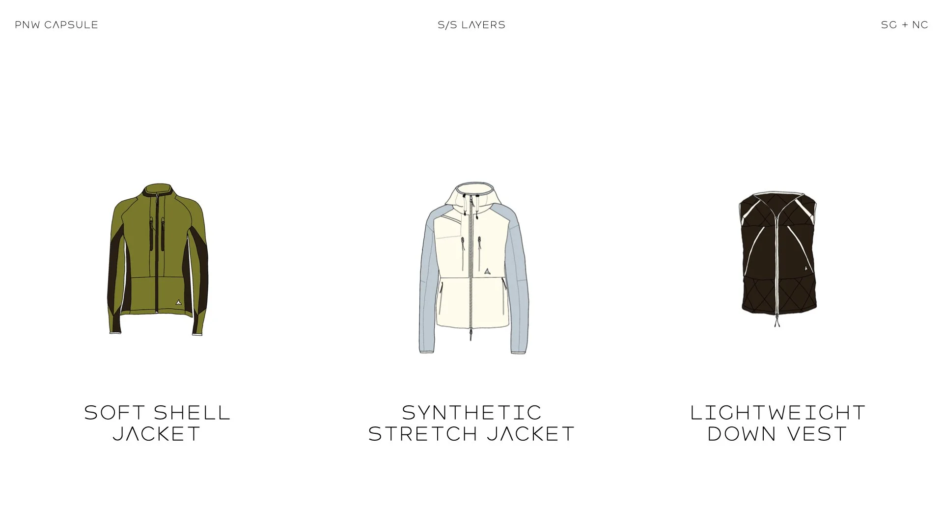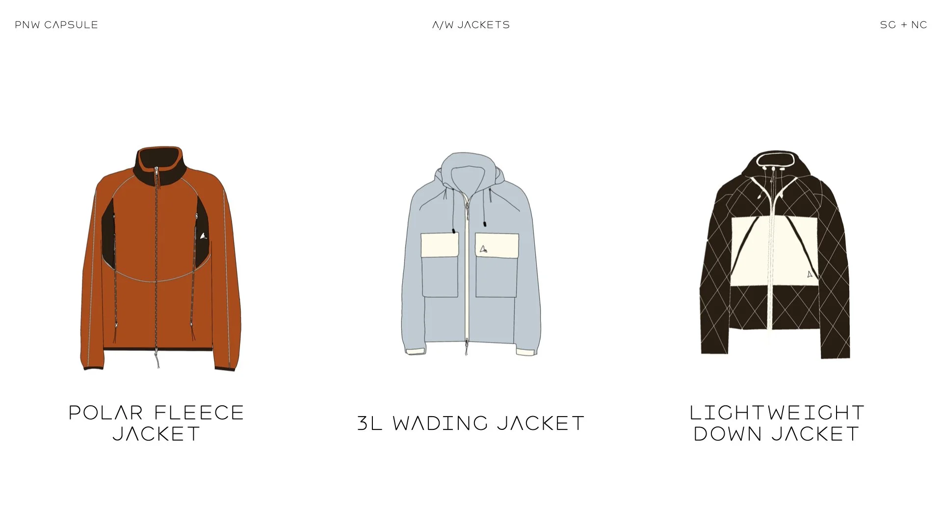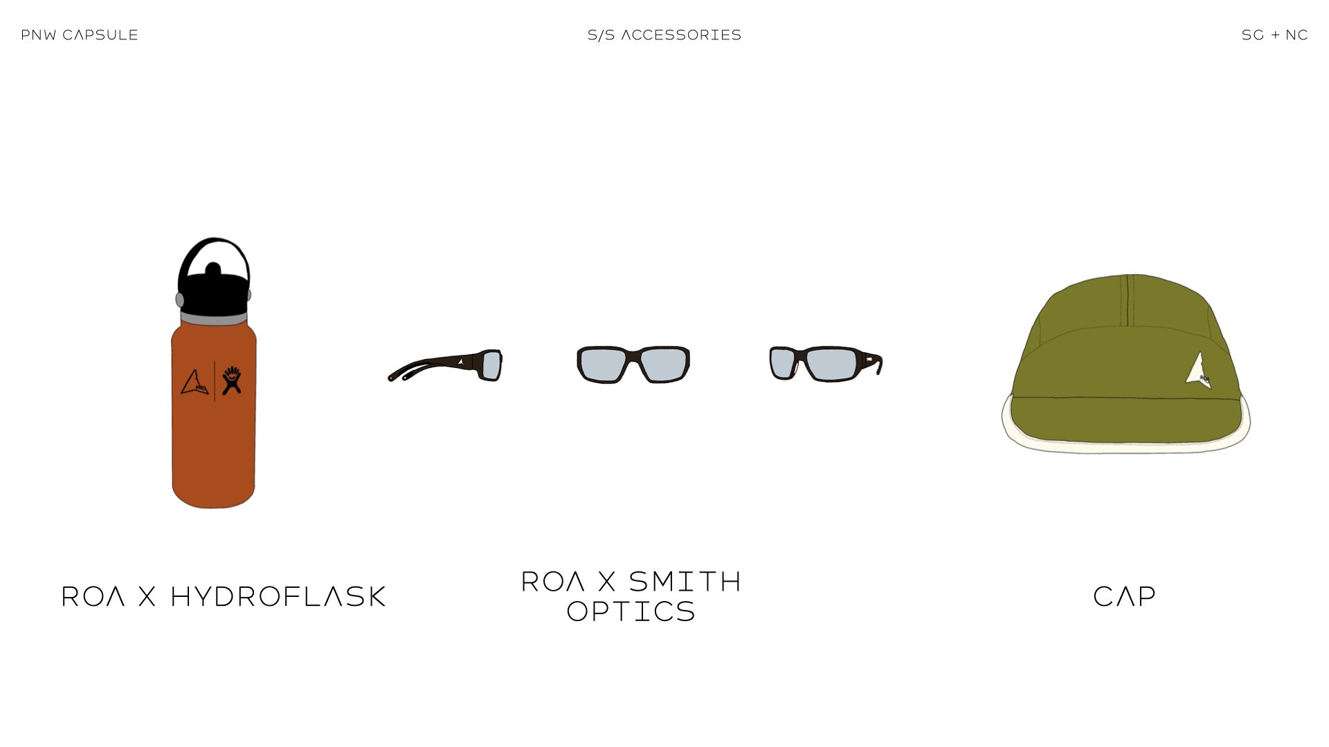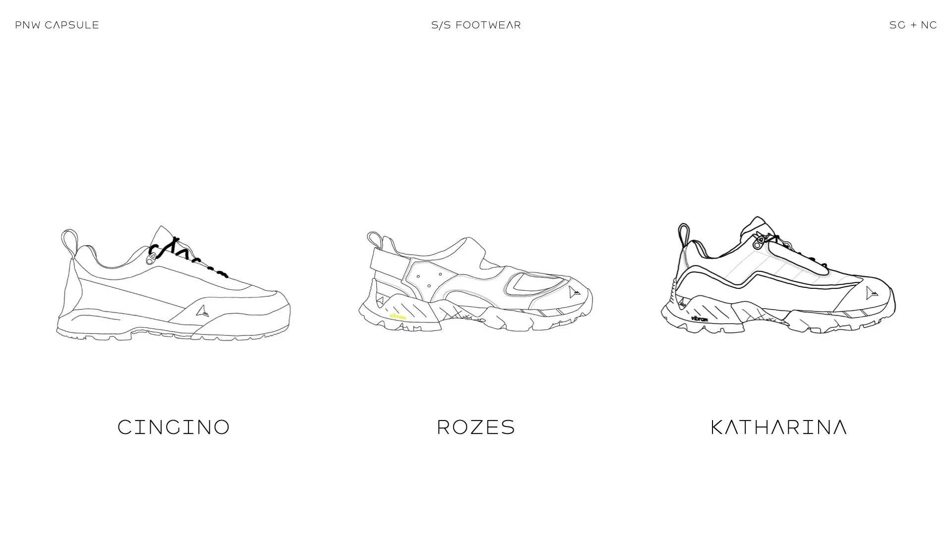 From there, I built a two-season line plan. Part homage, part evolution. I reimagined existing ROA silhouettes through material and color stories that speak to the PNW environment, and introduced new designs born from its terrain. I explored brand collaborations rooted in regional relevance and developed a rollout strategy that could serve as a launchpad for broader U.S. growth.