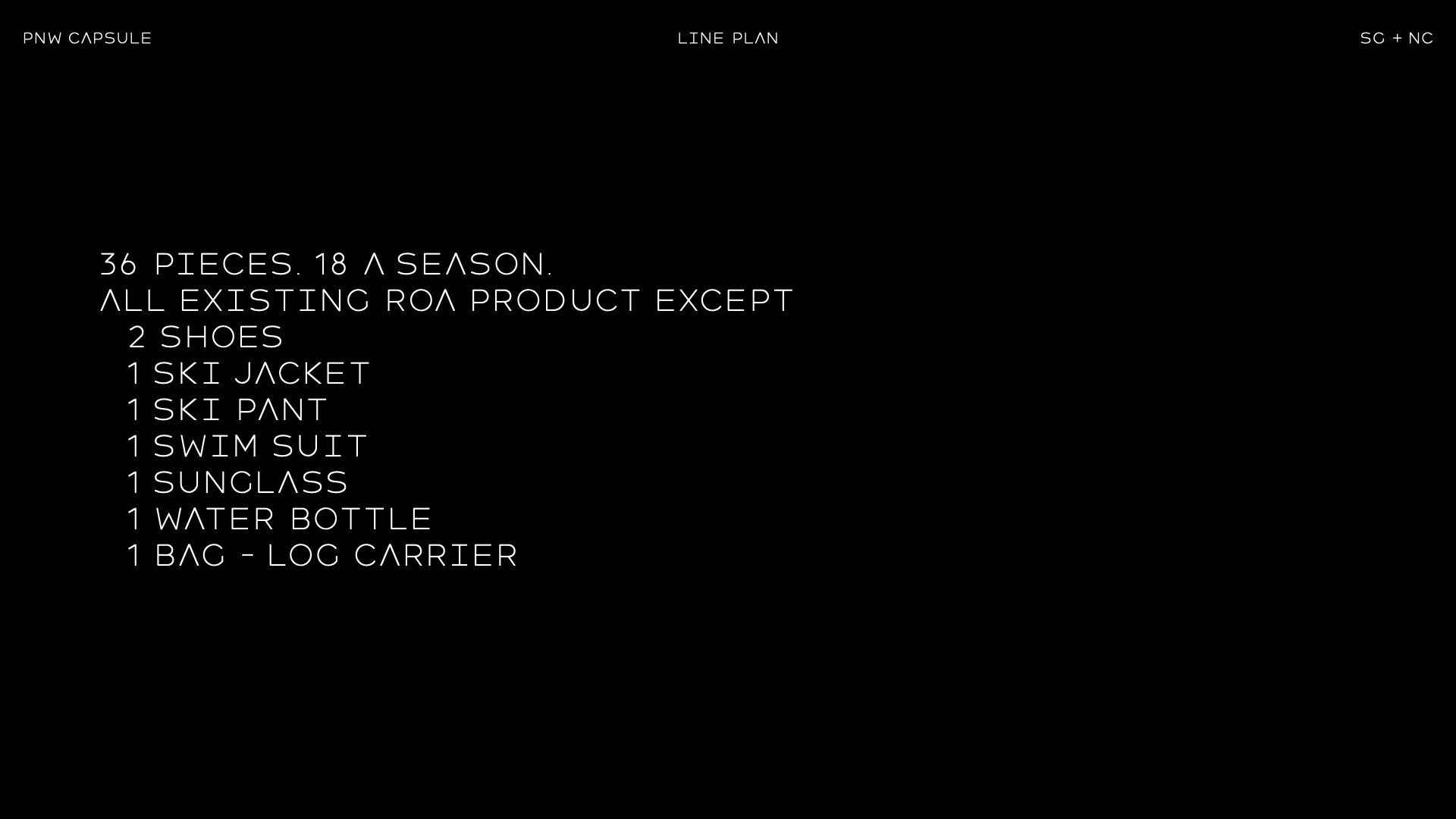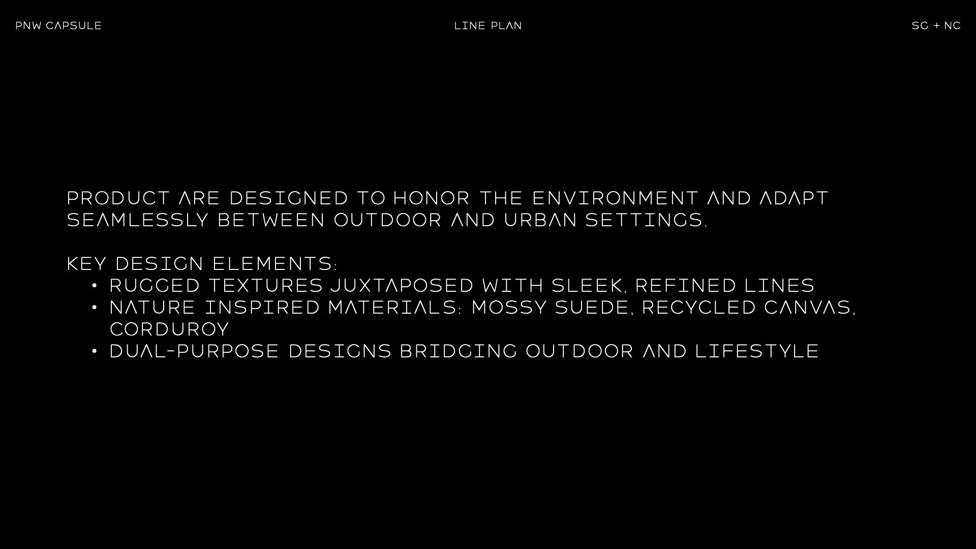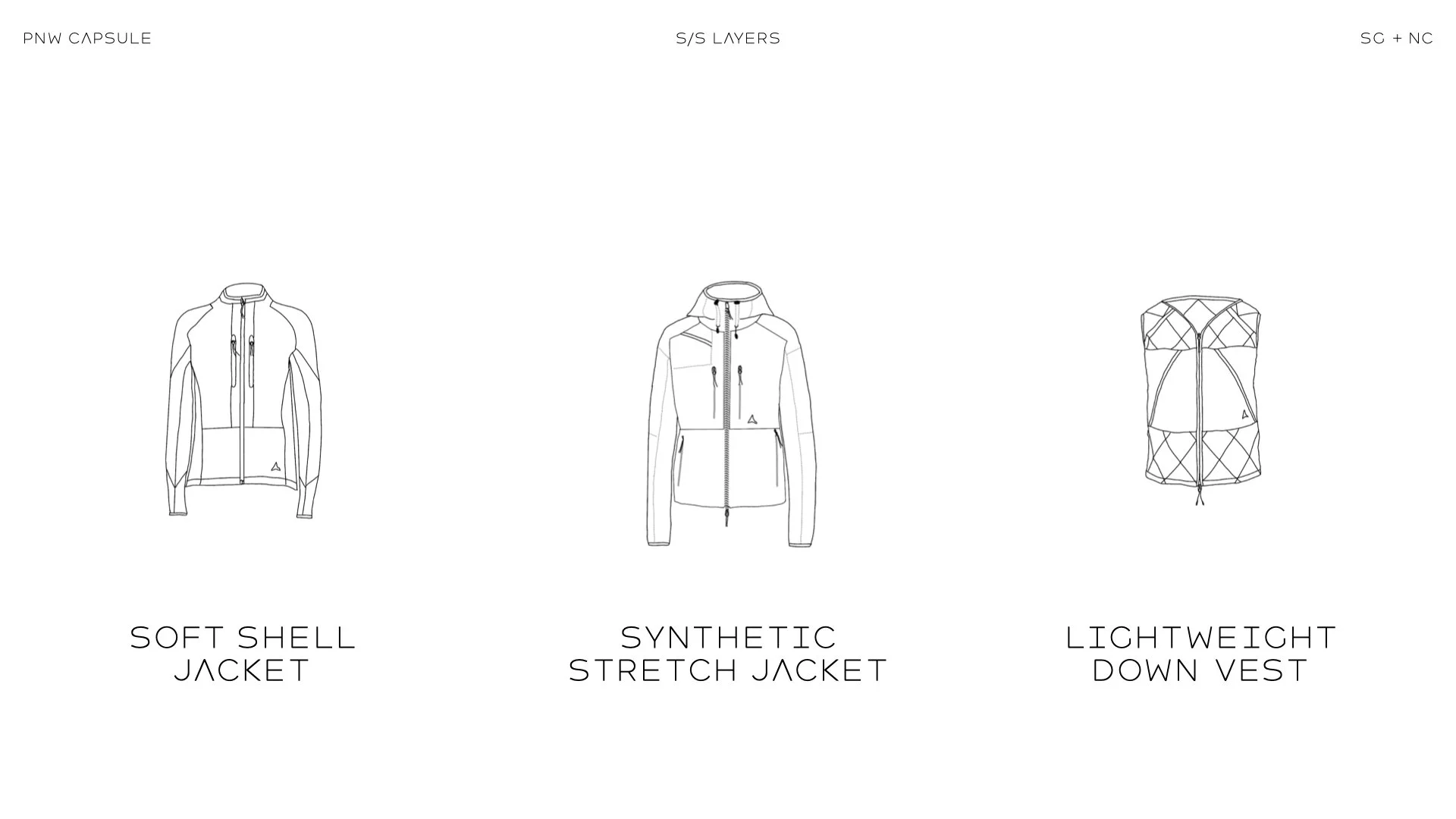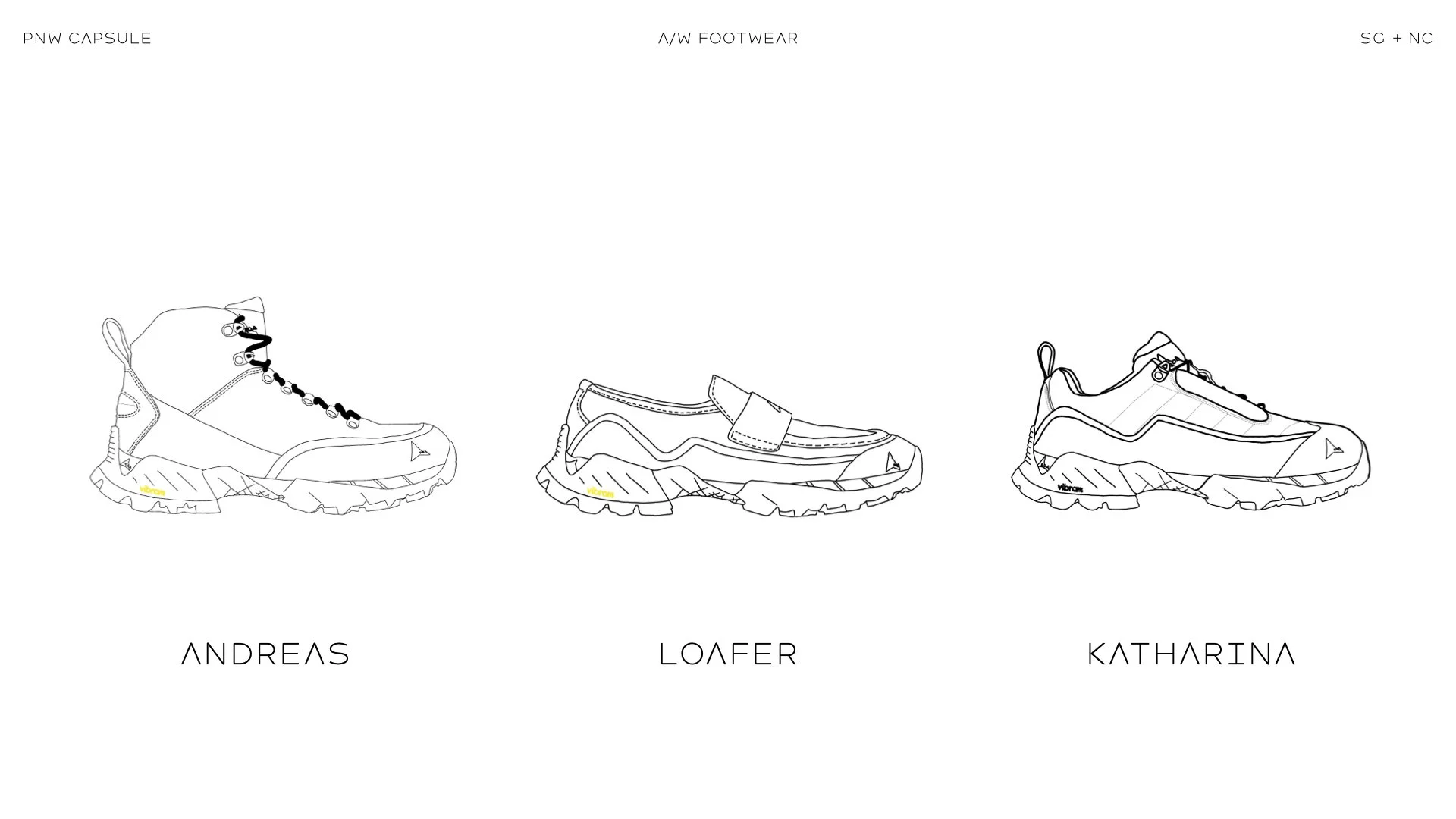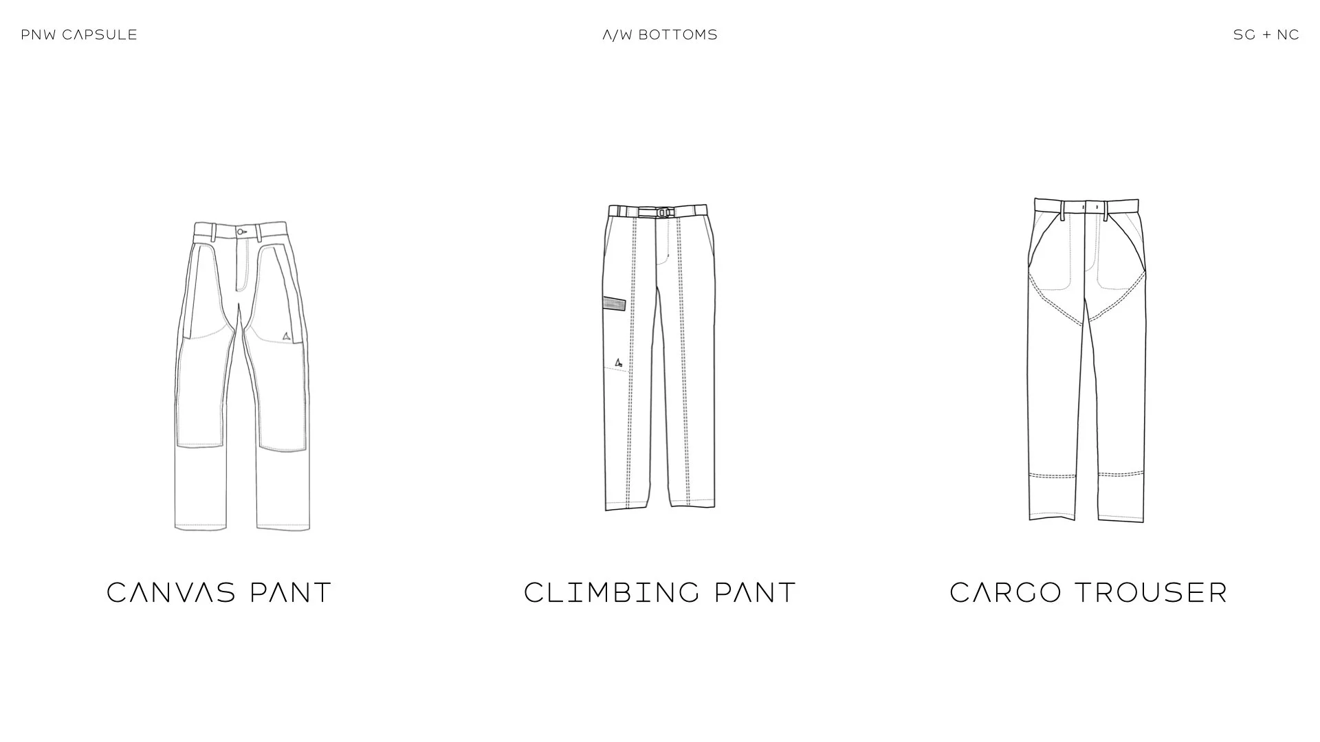 From there, I built a two-season line plan. Part homage, part evolution. I reimagined existing ROA silhouettes through material and color stories that speak to the PNW environment, and introduced new designs born from its terrain. I explored brand collaborations rooted in regional relevance and developed a rollout strategy that could serve as a launchpad for broader U.S. growth.